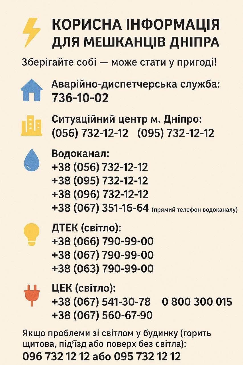 КОРИСНА ІНФОРМАЦІЯ ДЛЯ МЕШКАНЦІВ ДНІПРА! (27.01.2026)