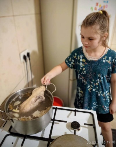 Ми навіть дочекались, поки повар Дома тимчасового перебування дітей, приготує першу страву-курячий суп з наших харчів.